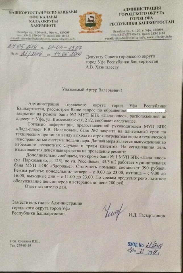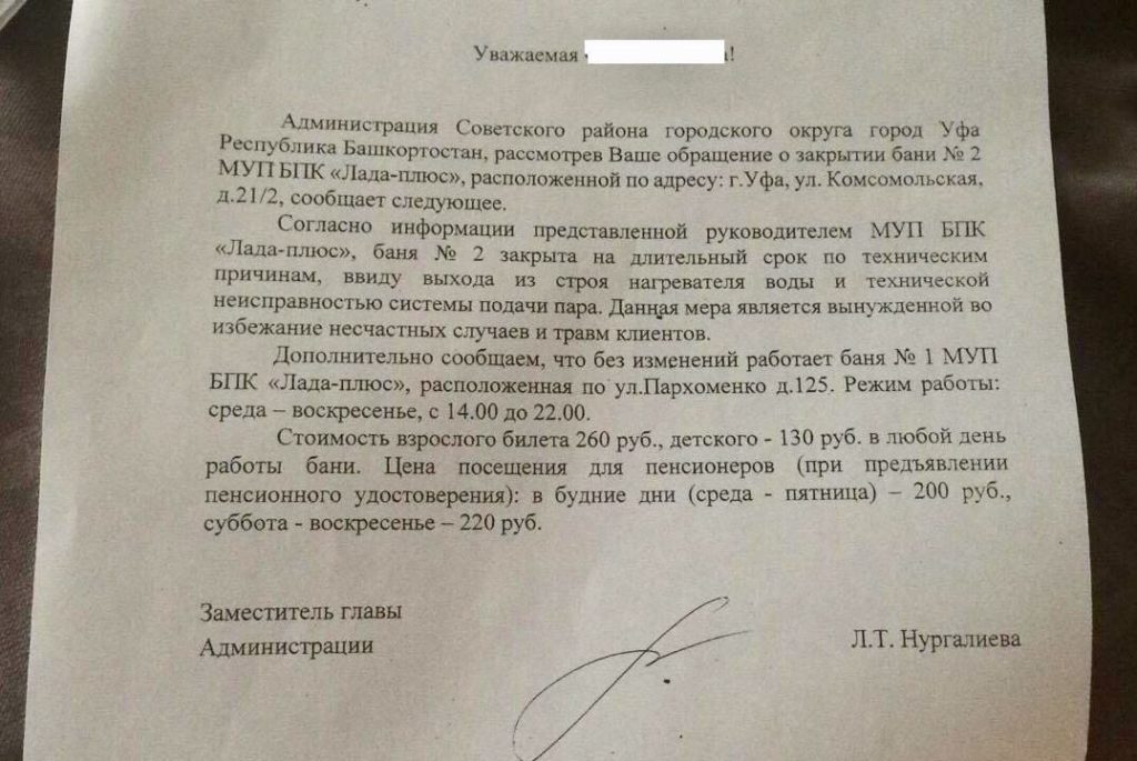 На приём пришла жительница улицы Комсомольской с жалобой на то, что закрыта единственная в этом районе баня. Там достаточно большой частный сектор, для которого единственная возможность помыться — это муниципальная баня. Запрос написали жители, получили ответ, мол, идите в другую. Написал я — тоже туда же отправляют.