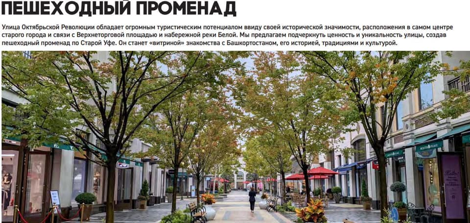 Самое воодушевляющее в проекте, на мой взгляд- большое внимание историческому центру. Планируется сделать два пешеходных кольца по исторической части города, будет уделено внимание отдельным памятникам архитектуры. В планах также столь необходимое Уфе оживление нашей бетонной набережной. Обновят или создадут 24 общественных пространства по всему городу, расширят велосипедные маршруты. По сути, в проекте собрано многое из того, за что давно выступают уфимские активисты и общественные организации.