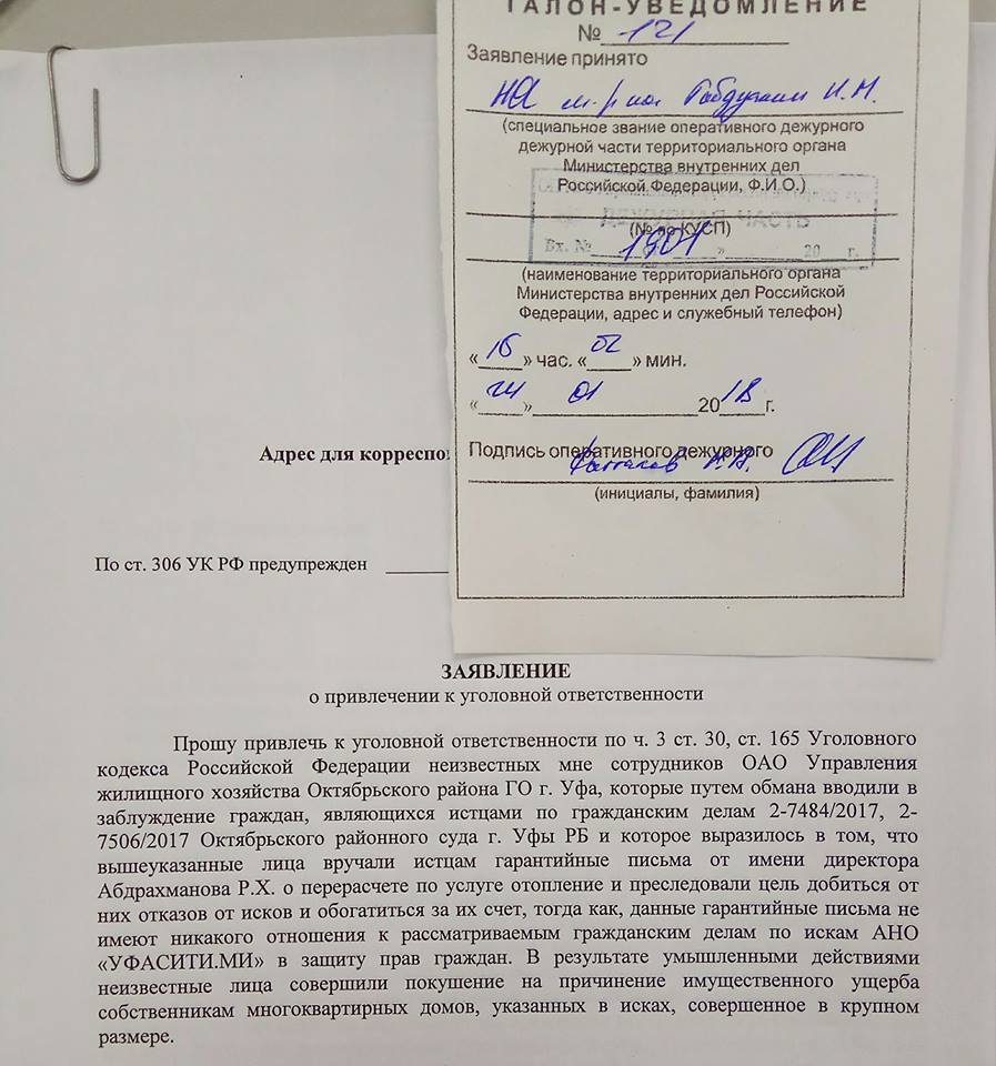 Подал сегодня все эти документы в полицию, на возбуждение уголовного дела.