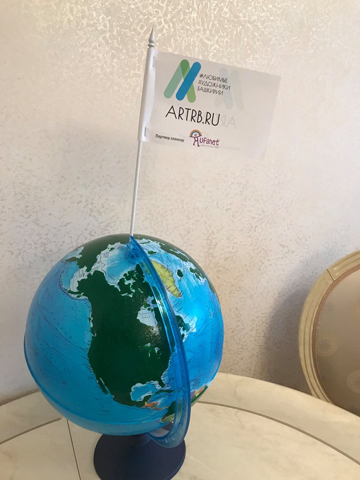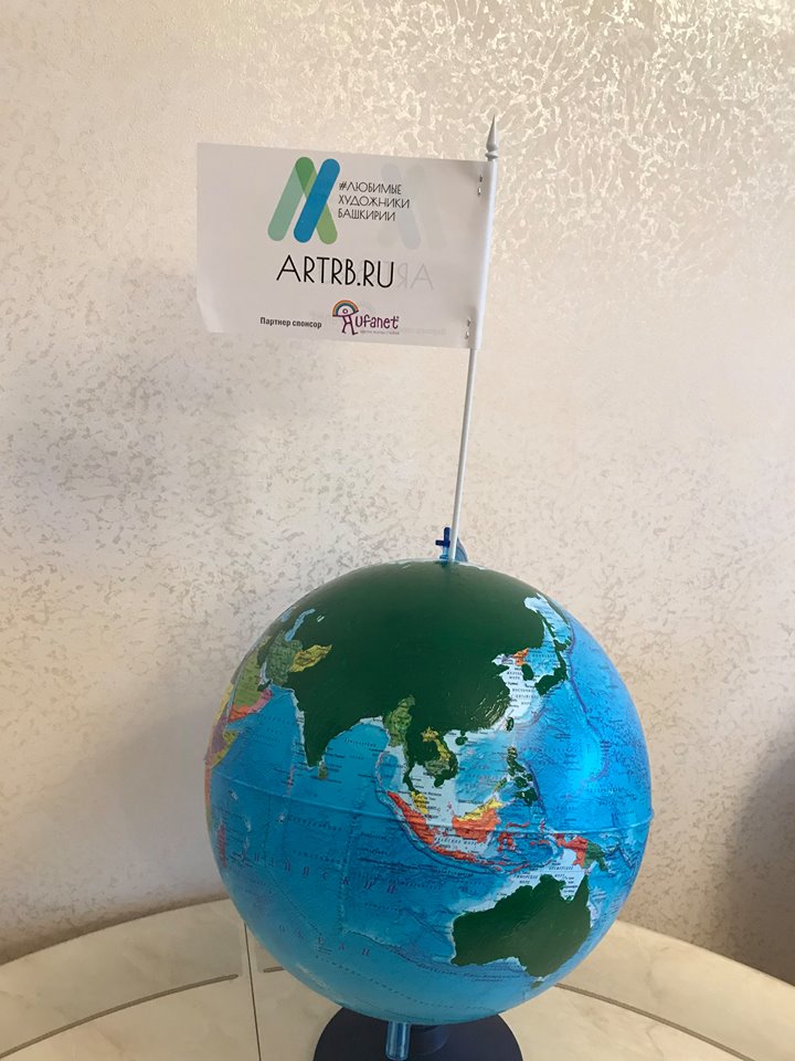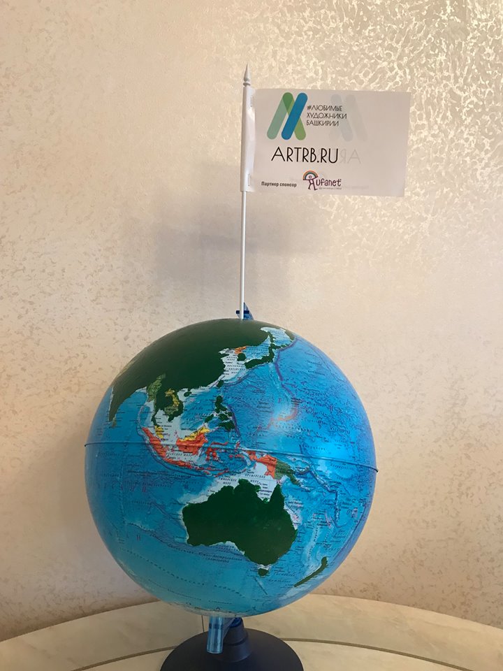 Когда я рассказываю ссылаясь на данные яндекс-метрикс о том что на сайте «любимые башкирские художники»за работы наших живописцев голосуют из 84 стран(.данные на 20.12.2017г) люди не могут представить зрительно это много или мало.??? Я взял список этих стран у нашего айтишника Германа Титова и попросил известного башкирского художника и музыканта Айдара Альметова закрасить на глобусе страны откуда идет голосование за башкирских живописцев. и вот что получилось. закрашенное зеленой краской это страны жители которых голосуют за наших талантливых живописцев. Незакрашенные страны это те которые еще не прознали как много они теряют не видя великолепные картины наших мастеров их на сайте уже 567 художников.А флаг на фото это точка на северном полюсе где будет установлен вымпел с именами художников победителей конкурса.