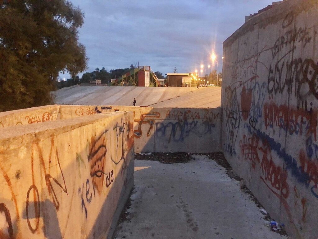 Набережная в жилом районе выглядит не как прогулочная зона, а как бетонный гидротехнический объект. Все недоделанное разрушается и Набережная становится похожей на гетто. И если в ее начале на протяжении где-то километра были установлены заграждения, то дальше даже железные прутья, установленные для водружения этих заграждений, были спилены, из-за чего все выглядит очень неприглядно. Мусорных баков нет или очень мало и повсюду лежит мусор.
