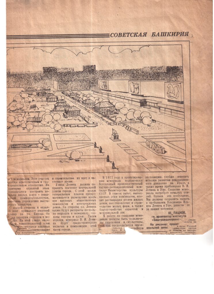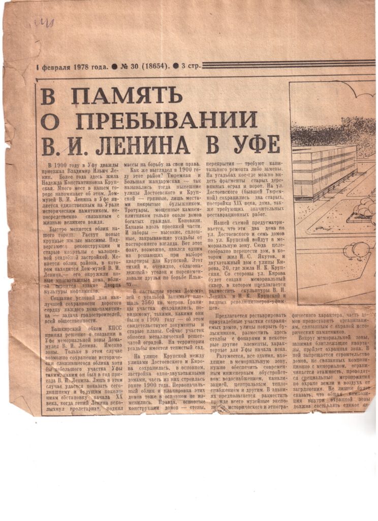 Нашла среди домашних документов газетную вырезку из Советской Башкирии от 01 февраля 1978г., о создании в Уфе мемориальной зоны Дома-музея В.И. Ленина.