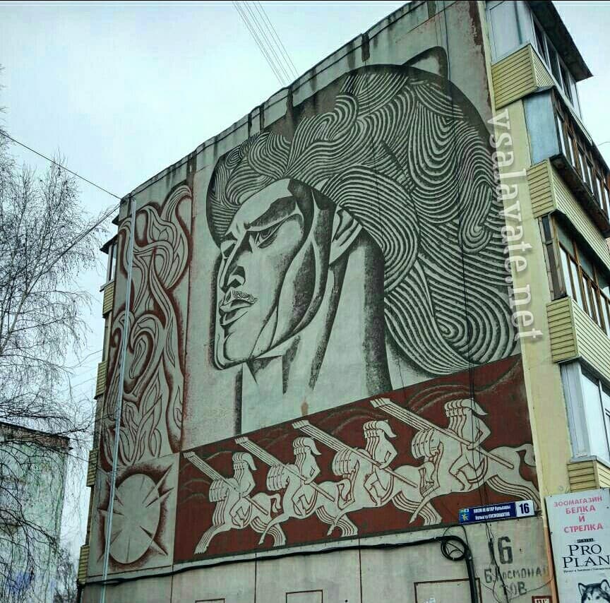 Национальный герой Салават Юлаев. Рисунок на одном из домов в одноимённом городе.