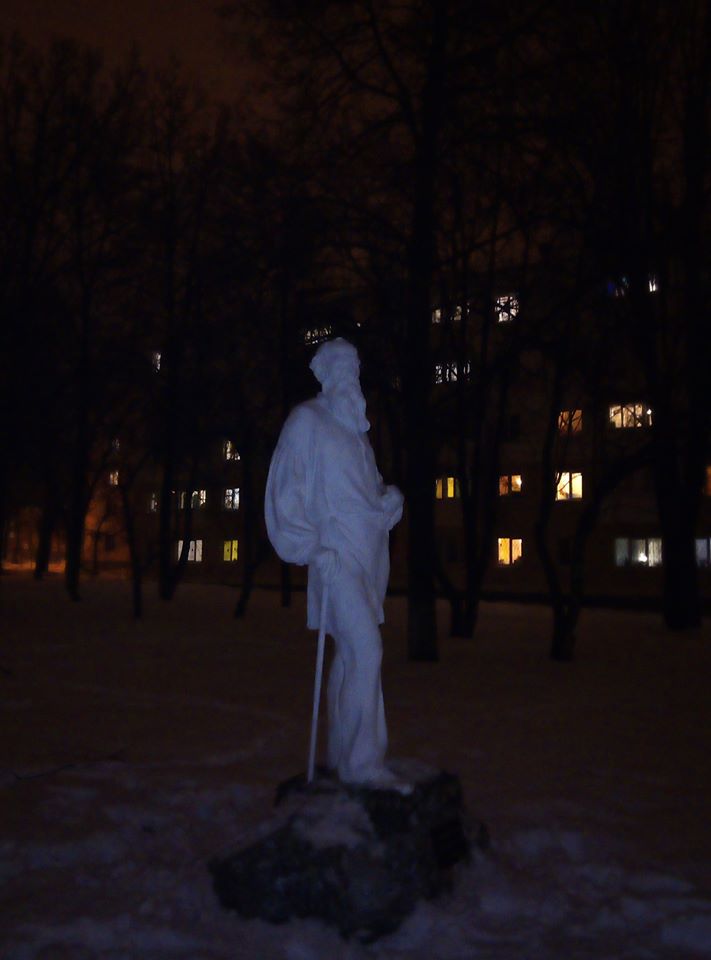 Лев Николаевич стоит и задумчивым взором смотрит на «Пятёрочку» (в бывшем «Орленке») . Согласитесь, все лучьше чем зомби-семейства местного отлива в парке Якутова