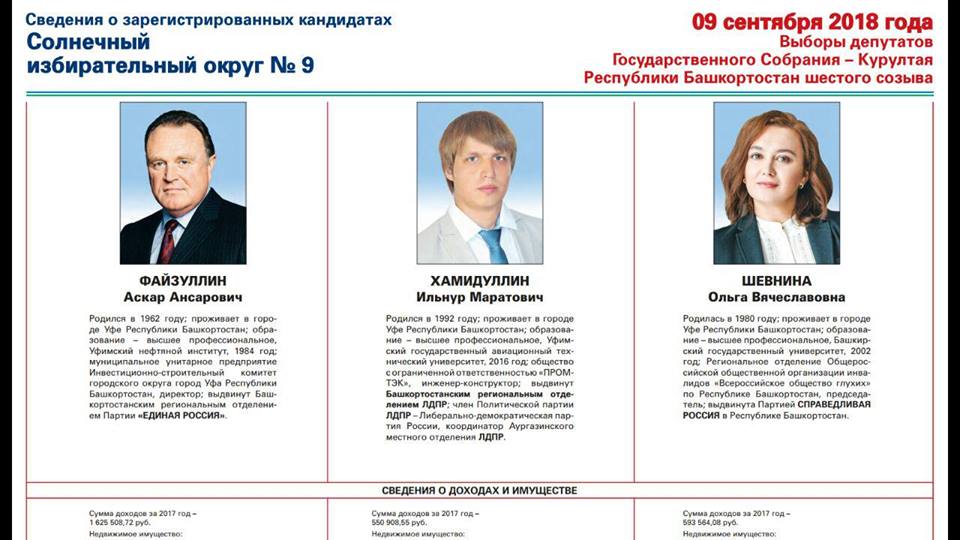 Итак, по Проспекту (Солнечный избирательный округ) — 3 человека. Файзуллина знаю лично, пару раз пересекались на разных совещаниях, пока он командовал Уфаводоканалом, но тут Единая Россия, так что извините.