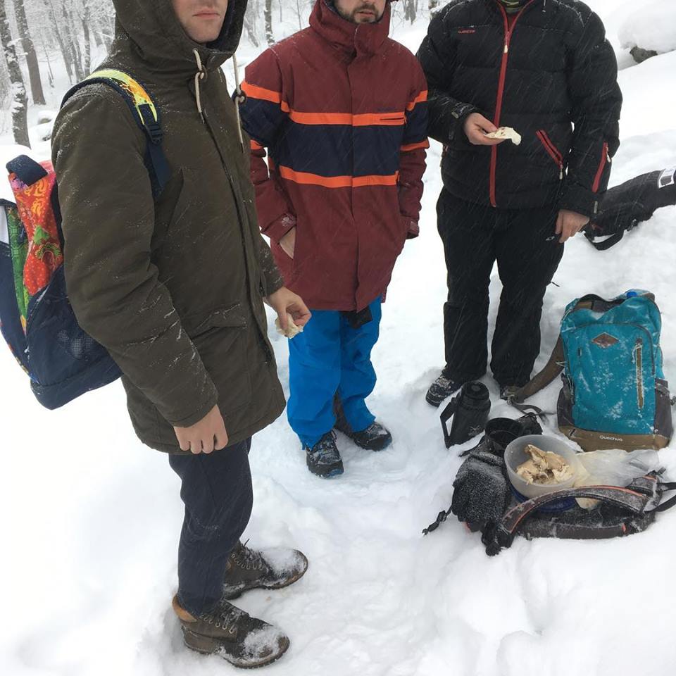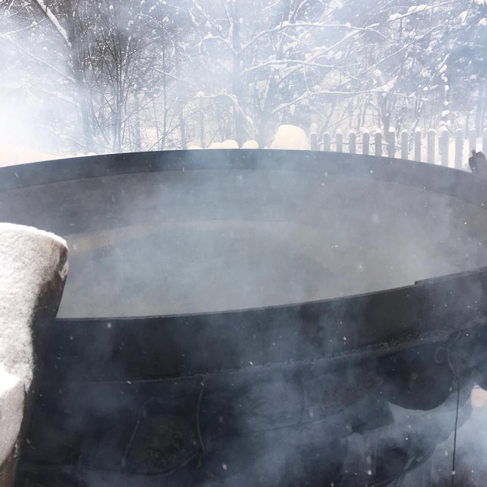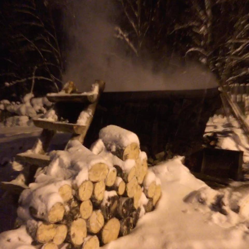 Сама баня приюта «Айгир» на троечку, но есть чан с горячей водой на улице. Эта процедура делает отдых после 20 км на ногах полноценным. Особенно зимой. Есть что-то волшебное в отмокании в тёплой воде, когда на тебя в тишине валит снег.