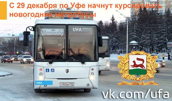 В дни новогодних каникул в столице Башкортостана с 29 декабря по 8 января до всех праздничных достопримечательностей горожане и гости города смогут добраться быстро и бесплатно – на специальных новогодних метробусах.