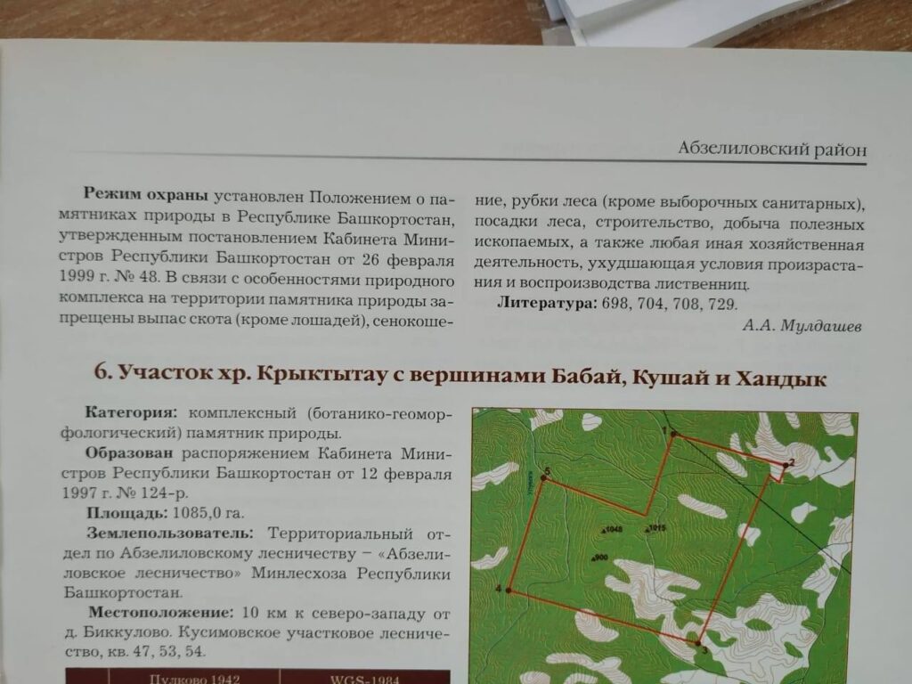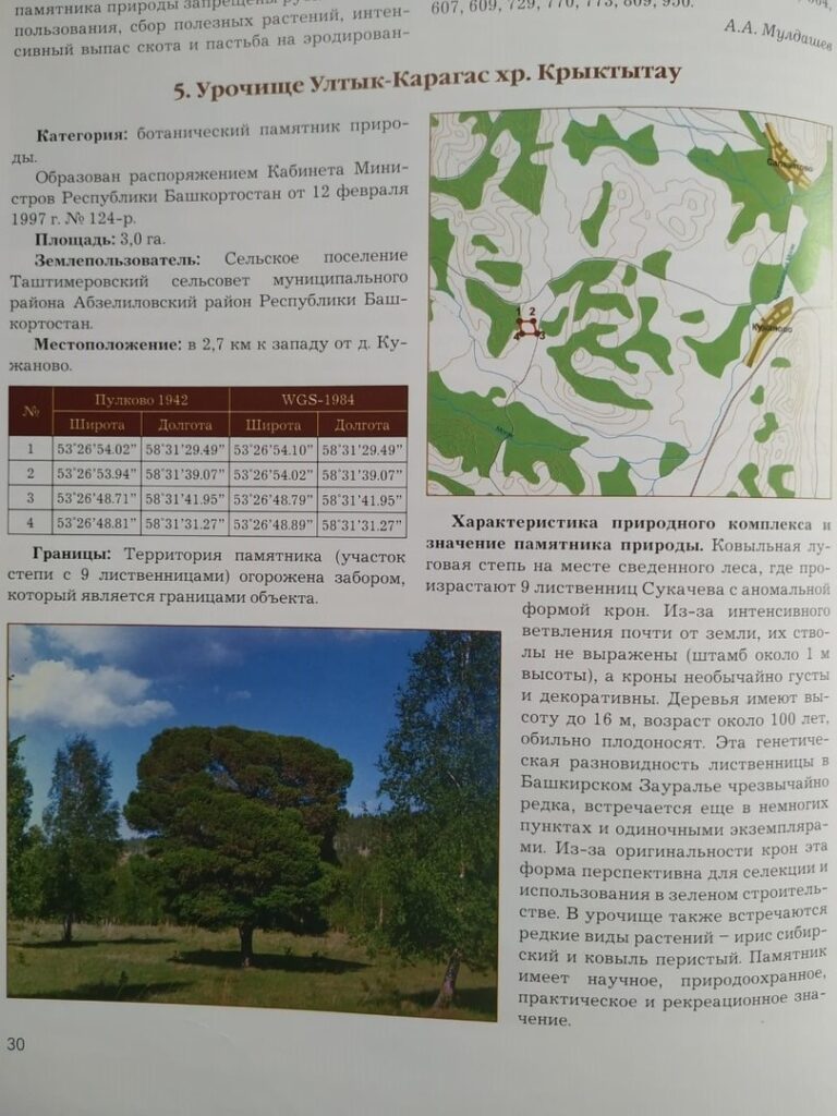 Официальную информацию про статус памятника природы мне прислал Фарит Фанилевич Абдуллин (Фарит Абдуллин (Farit Abdullin); https://vk.com/ufarit). Он мне сообщил, что Кужановские лиственницы — Памятник природы, пл. 3 га, образован пост. КМ РБ от 12.02.1997 г. N 124-р. Прикрепляю фото, которые подтверждают этот факт. Также там указан возраст лиственниц. На сегодняшний день им примерно 105 лет.