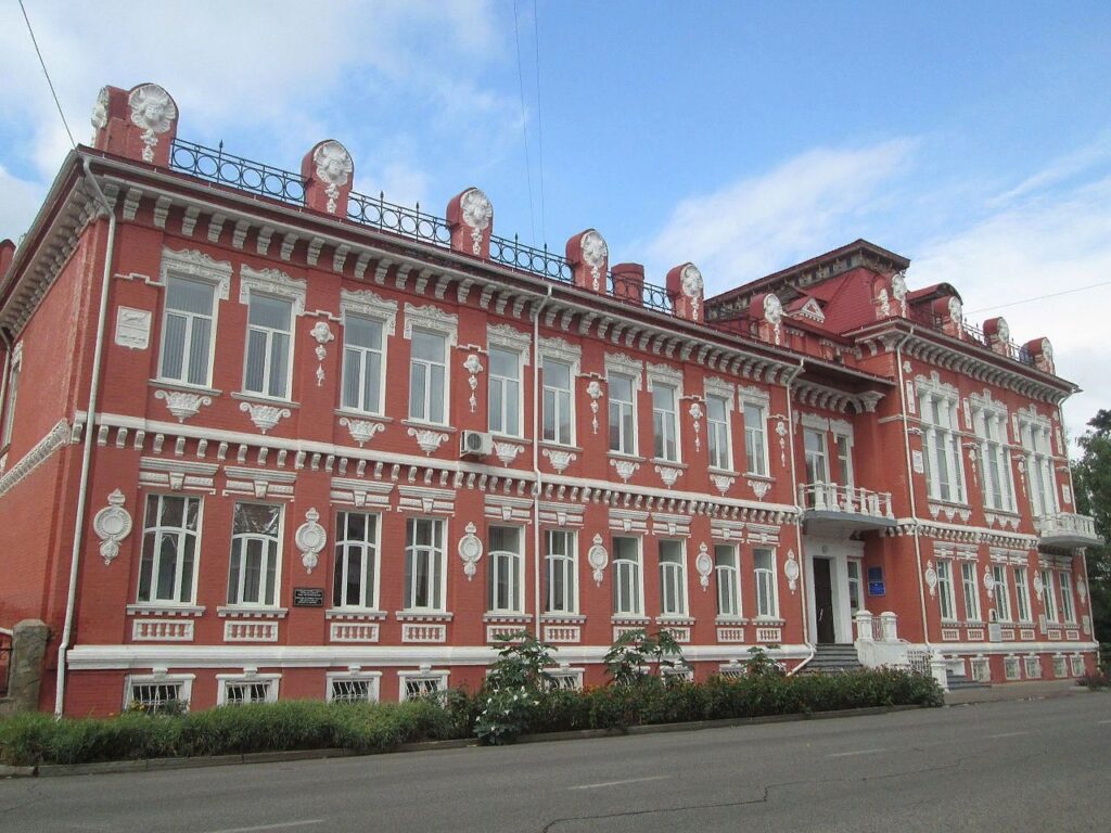 Фото №1. Аптека А. Н. Лебедькова, улица Карла Маркса, 104. Здание построено в начале XX века купцом Яковым Ивановичем Поповым. Изначально в здании располагалась частная аптека М.А.Александровой, которая была выкуплена провизором Александром Николаевичем Лебедьковым, который содержал в городе сеть аптек и был гласным (депутатом) городской думы. С конца 60-х годов здесь размещалась бухгалтерская школа.