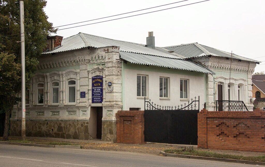 Фото №6. Дом К.И. Лейдекера, улица Карла Маркса, 126. Построено служащим земской управы Константином Лейдекером в конце XIX века. После революции здание муниципализировано. Долгое время здесь были жилые помещения, с 60-х годов — бюро ритуальных услуг.