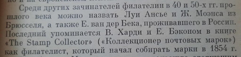 В филателии был свой «золотой век» — вторая половина XIX и начало XX столетий. Когда были созданы самые богатые коллекции и взошли звёзды самых великих собирателей — Филиппа Феррари, Жана-Батиста Моэнса и прочих. В Российской Империи тогда тоже появился свой герой — некто Эдмунд Петрович фон (или ван) дер Бек. Сейчас мы практически ничего про него не знаем. Он упоминается в замечательной книге англичан братьев Уильямсов «Почтовая марка. Её история и признание», а с их слов — ещё и в капитальном труде по истории филателии Stamp collector («Собиратель марок») других британцев, Харди и Бейкона, прочитать который мне пока не довелось. Ещё о нём, как о выдающемся знатоке земских почтовых марок и об их удачливом фальсификаторе (кто без греха?), есть две журнальные статьи советского времени — «Оханские редкости» и «Операция ван дер Бека». Наконец, у некоторых современных собирателей есть раритеты из личной коллекции ван дер Бека, заверенные его личной печатью.