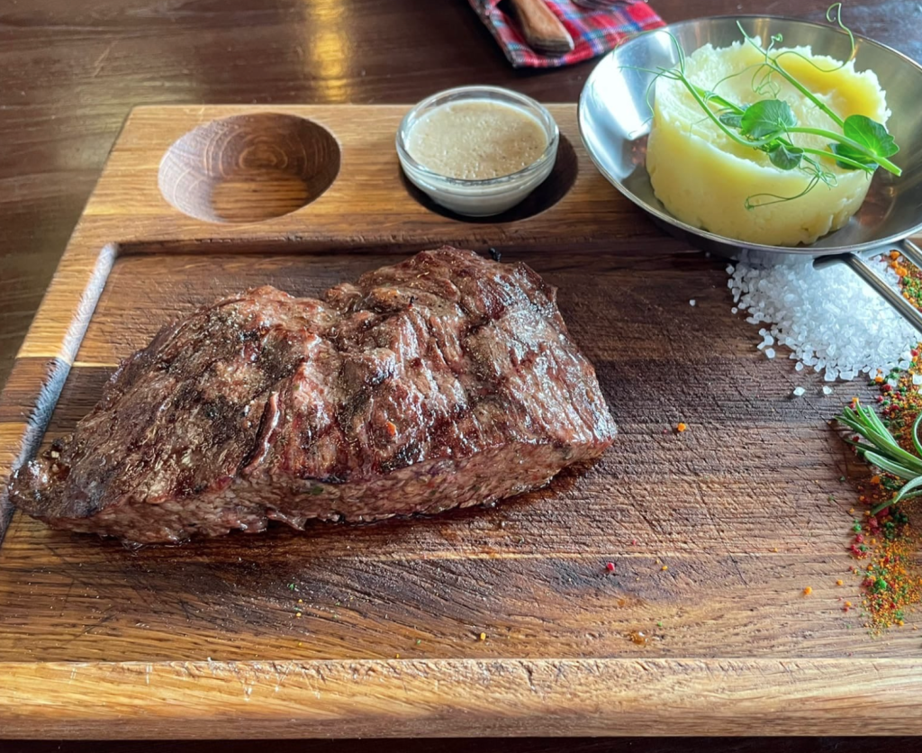 Обзор на «Угли». Я не большой любитель стейков, раз в год ем что-то в LDGR на «Стейках по себестоимости» и это примерно все. Но стейк в «Углах» просто бомба как вкусен и потрясающ, рекомендую всем. По воскресеньям там еще и акция «2 стейка по цене одного», так что, вот так выглядит счастье. Сочный, мощный, еще и официант посыпает ее перцем из гигантской мельницы, в общем я доволен очень