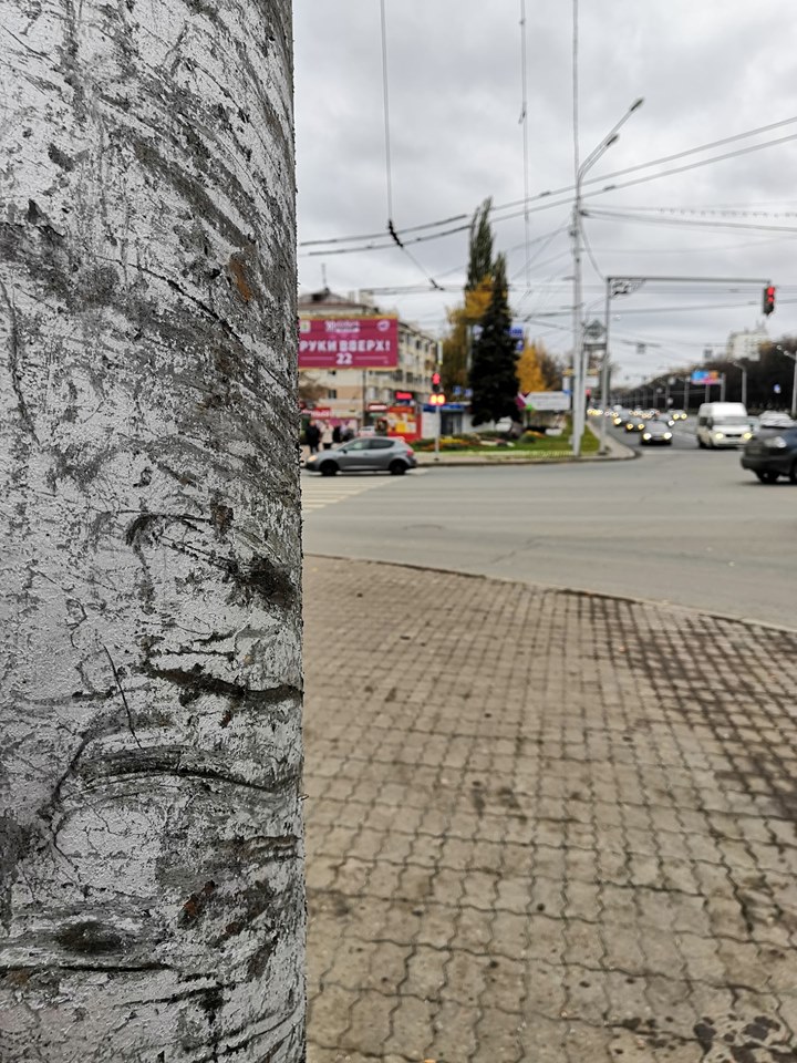 На первой фотографии остановка «Спортивная» в Уфе и современная береза выращенная в суровой Башкирии. Современные проблемы требуют современных деревьев, поэтому береза у нас из металла, покрытая шрамами от пассажирского автобуса 249 маршрута, который в субботу, 12 октября решил проехать через перекресток на мигающий зеленый сигнал светофора. Может это и норма, может он был в своем праве, возможно даже виноват водитель автомобиля ВАЗ-2109, но не думаю, что эта информация как-то успокоит 10 пассажиров автобуса, которые пострадали в этом ДТП.
