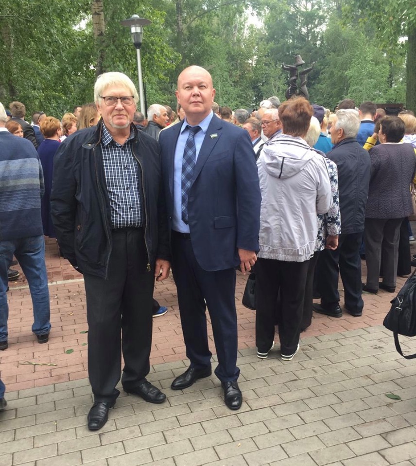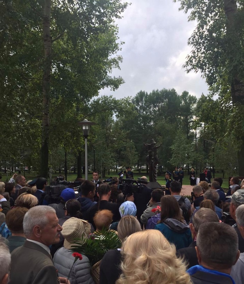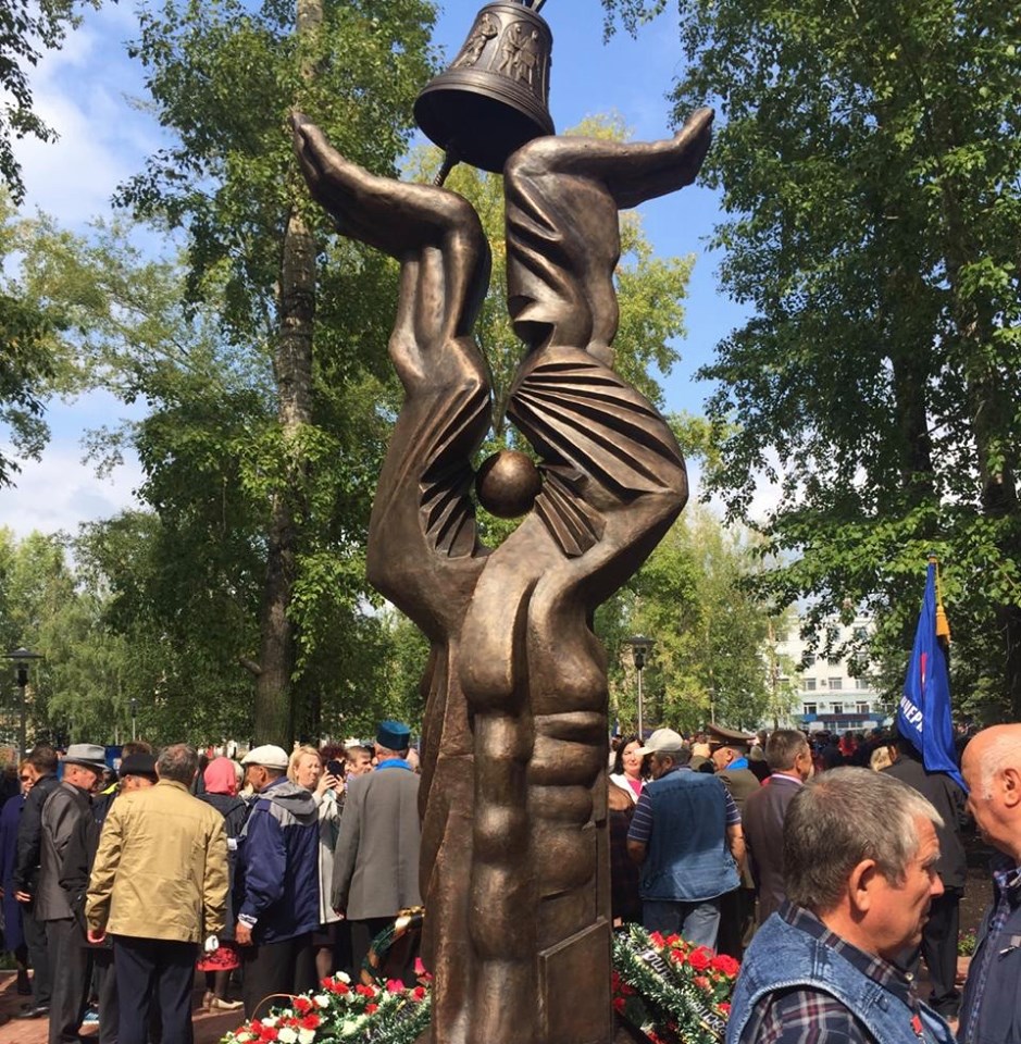 Открыли памятник «Героям-ликвидаторам Чернобыльской катастрофы и других радиационных аварий». Автор рассказал, что все построено на символах, в камне — про взрыв, четвёртый реактор (линии по бокам), волну радиации, которая стелется по земле. Про людей разных профессий, участвовавших в ликвидации последствий катастрофы — в колоколе. И про, что нужно не забывать о случившемся. P.S. Сделал фото с вертолетчиками, которые летали над реактором. Было много людей, и глава городской администрации, и активисты, и просто горожане.