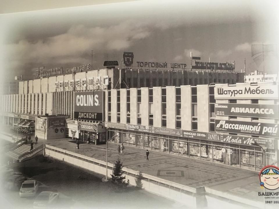 «Колинс, в них выросла вся Америка», (а мы за ними донашивали). На период «суверенитета» ТЦ «Башкирия» был переименован «согласно Конституции РБ» в Башкирию. Как и одноименая гостиница. Как только этнократия пала, запрещенное слово «Башкирия» вернулось на вывески и в местную прессу. А из обихода никуда не уходило — сам М.Рахимов с трибуны часто это слово употреблял, как и любой рожденный в БАССР