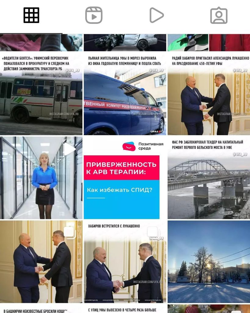 Единственная новостная страница в Инстаграме, на которую я подписана — это @ufa_rb . Но, похоже, отпишусь, потому что новости как-нибудь узнаю, а качество их от этого пабликп оставляет желать лучшего. То у них на линию выходит 50 из 30 троллейбусов. То кликбейт и картинка совершенно не соответствует посту. А сейчас вот, похоже, зациклило. Встреча Хабирова с Лукашенко — это, конечно, важно. Но не 3 же поста одной новости уделять. То Радий с Батькой встретился, то Батька с ним. То Хабиров Лукашенко пригласил на празднование юбилея Уфы.