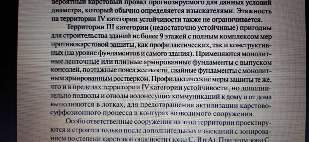 Фрагмент книги «Карст Башкортостана», стр. 189: «территории 3 категории пригодны для строительства зданий не более 9 этажей».