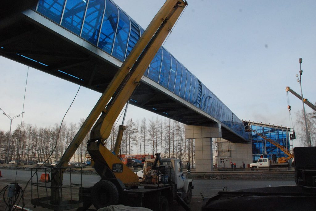 Подходит к концу строительство надземного пешеходного перехода длиной 58 метров над скоростной трассой Уфа-Аэропорт, у микрорайона «Спутник» В настоящее время объект находится на стадии завершения отделочных работ. Планируется, что после открытия перехода на прежнее место вернут остановку общественного транспорта .Мост оборудован лифтом для маломобильных групп граждан.