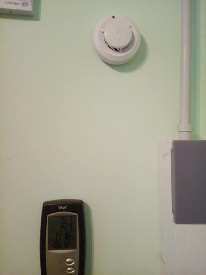 2. Второй тип- это датчик пожара или пожарный извещатель (которые в Башкортостане при рождении ребенка бесплатно выдают). Цена таких датчиков 100-500 руб. Мы за 230 р. покупали еще в 2012 году. Такие датчики приклеены у нас к стене, где распределительный щиток электричества и в тех. комнате, где система управления солнечных батарей. Компьютер там как раз для регулировки энергии солнечных батарей. За это время датчик сработал один раз — дети забыли закрыть дверь, а соседи костер жгли и дым в коридор затянуло. Звук такой стоял, что далеко слышно было.