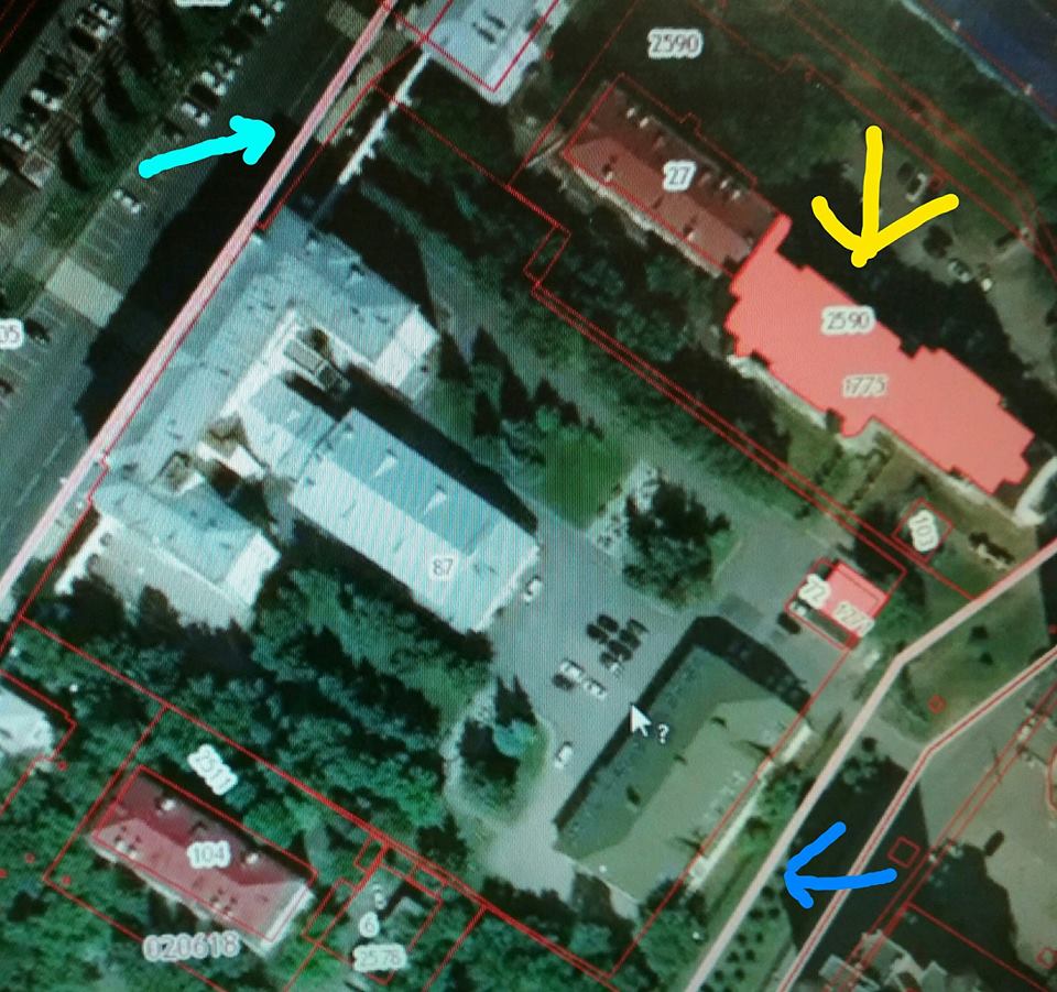 Оказывается, что здание Администрации города Уфы (там где цифра 87 на третьем фото) не поставлено на кадастровый учет с определением границ. Какой ужас! Здание рядом, где желтая стрелка поставлено как положено так как розовенькое, а вот администрация- нет. Как так? Ялалов требовал, чтобы все участки и строения были поставлены на учет. Так блин… начните с себя. Только если придете ко мне, я не буду здание администрации кадастрить, так как знаю я их все фишки — в земельном комитете есть еще секретный Оротфотоплан г. Уфы, который от публички отличается и из-за этого земельный комитет ооочень тяжело согласовывает границы, а иногда это вообще невозможно (согласовать границы) так как на этом фотоплане все еще хуже пересекается чем на публичке.