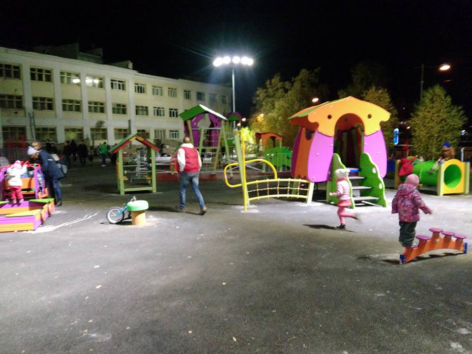 Площадка отлично освещена. Пожалуй, пока не хватает скамеек для родителей и бабушек, но думаю в планах они есть.