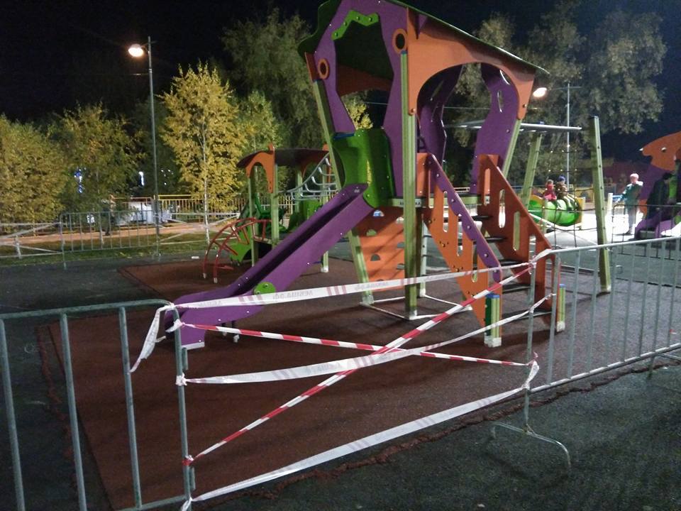 Пока делают покрытие в наиболее травмоопасных местах площадки, но в планах полное покрытие.