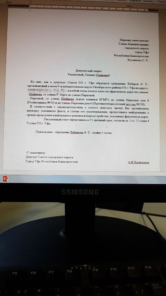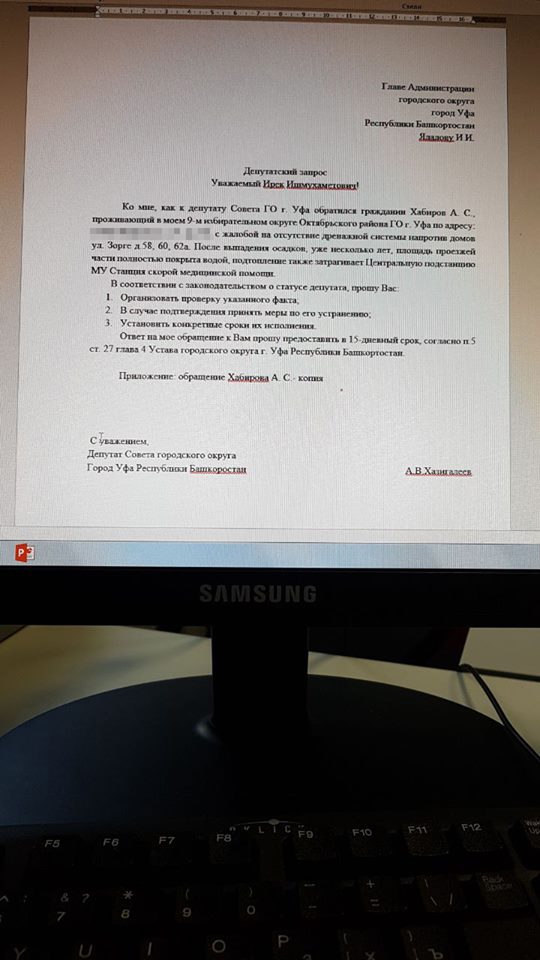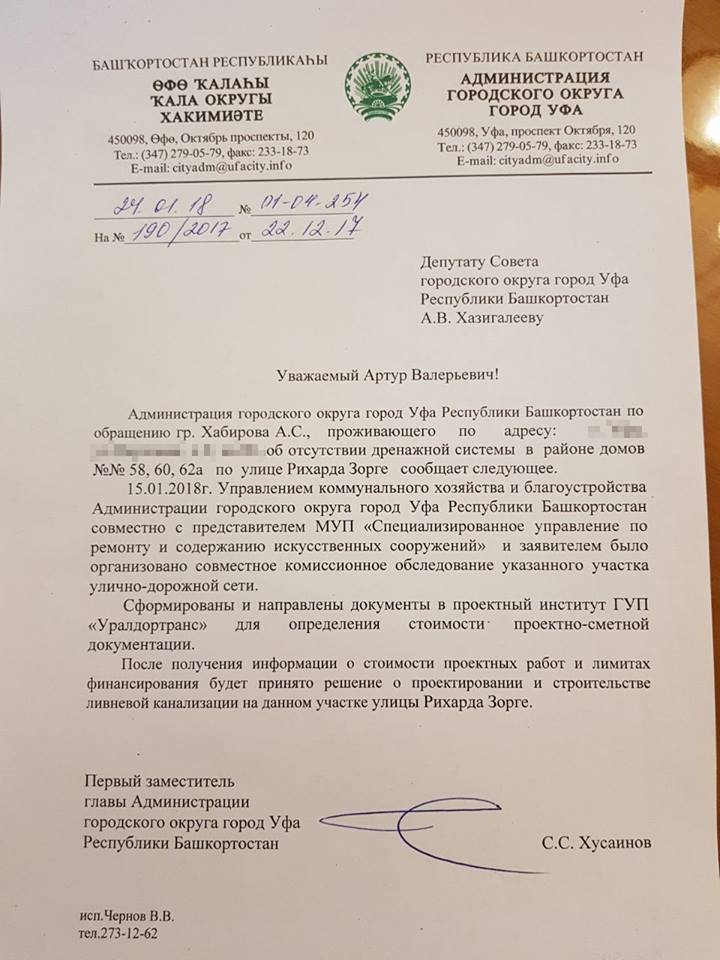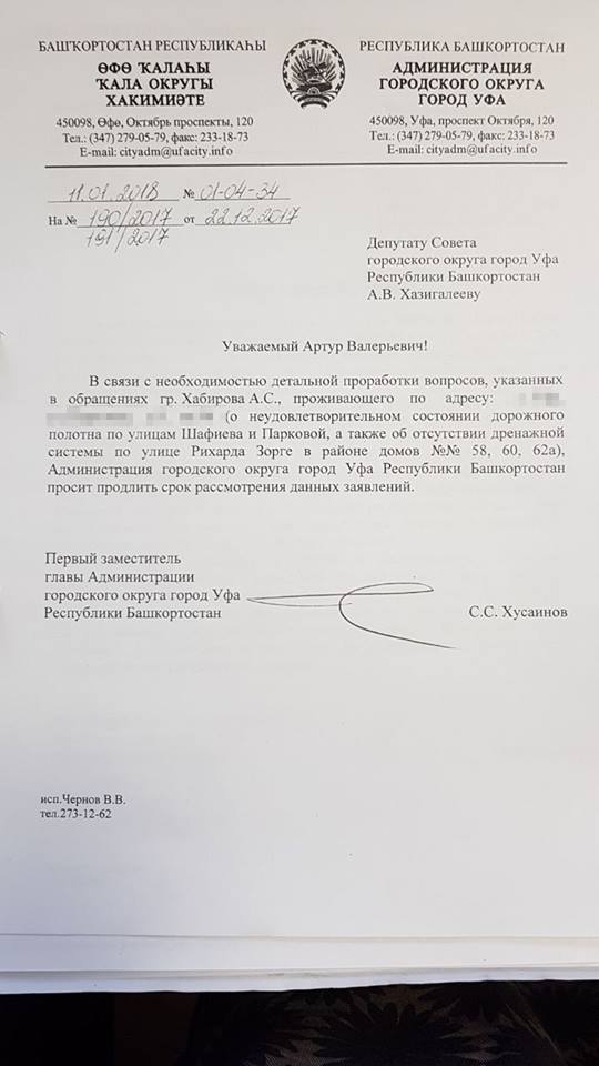 Помните, в декабре рассказывал про один из своих приемов и конкретно про обращение пользователя Фейсбука Айрат Хабиров? Айрата волновала ситуация в квартале шестой больницы (капремонт дорог и проблема с ливневками). Запросы по обеим проблемам мы сразу сделали. Хочу вам показать их и то, что пришло в ответ.