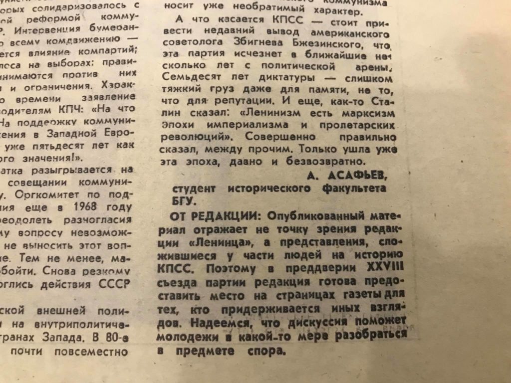 Весьма оптимистичный заголовок «Ленинца» 30-летней давности и фамилии старших коллег под публикациями той же весны