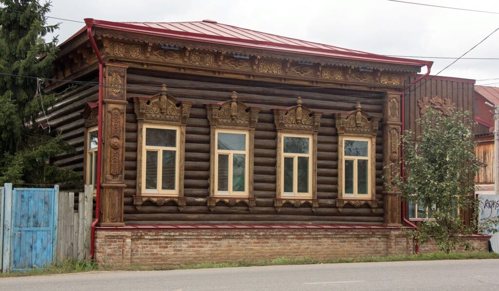 Фотография №10. Усадьба купца Кузнецова, улица Карла Маркса, 88. Особняк был построен купцом Алексеем Васильевичем Кузнецовым. Частично пострадал во время пожара 1908 года, был облицован заново тульскими мастерами резьбы по дереву. Дом, где в 1921 г. в штабе ЧОН Башкирии находился командир III командного батальона Аркадий Гайдар (А.П. Голиков). Сейчас — дом-музей Гайдара.