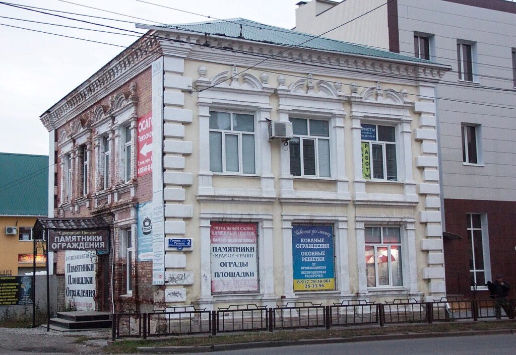 Фотография №7. Торговые ряды А.В. Кузнецова, улица Гоголя, 2 (корпус 2). Построены в 1907 году купцом . вел «полумиллионную» оптовую торговлю хлебом. Владел мельницей — крупяной и первой паровой мельницей, построенной в 1889 году.