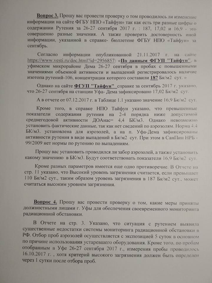 3. Товарищи путаются в показаниях. Так за 26-27 сентября 2017 года, есть три разные цифры по содержанию Рутения в п. Дема-Уфа и все со ссылкой на НПО Тайфун. Непонятно как в одной и той же пробирке могут уместиться 16,9 Бк, 17,02 Бк и 187 Бк. Согласитесь, что цифра разные. Пусть разберутся с этим.