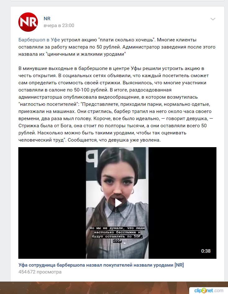 11 февраля около 14 часов мы увидели в FB занятный видеоролик — девушка назвала клиентов барбершопа циничными, жалкими и не очень красивыми ребятами. Мгновенно появилась идея — получится ли развить идею до общероссийских масштабов? Не попробуешь — не узнаешь, так что мы взялись за дело.