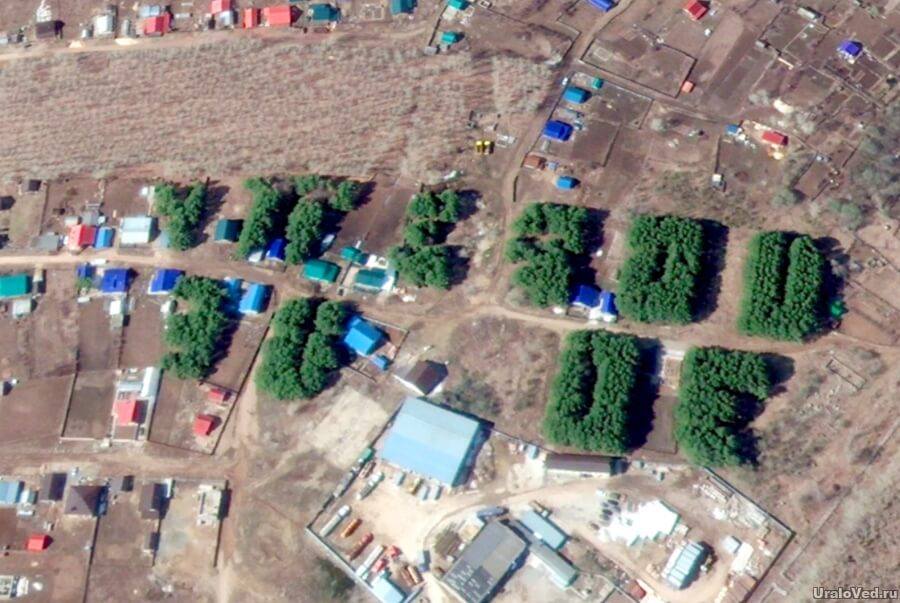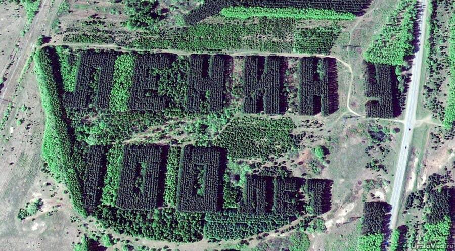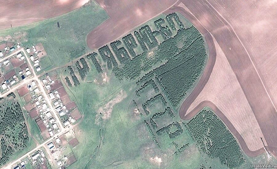 Проект «Ураловед» насобирал жутковатых снимков из космоса, а газета Mkset опубликовала те, что из Башкирии. Следы творчества ландшафтных дизайнеров-гигантоманов обнаруживаются тут и там, фоточек на удивление много. Пик их лесокреатива пришелся на 1970 (100-летие Ленина), 1977 (60-летие революции), 1982 (60-летие СССР). На что они рассчитывали, если спутниковой съемки считай что не было? Получается, на то и рассчитывали. Пугающе выглядит и явное незнание потомков о том, что они живут в каком-нибудь гигантском «КПСС» — судя по наползанию домов.
