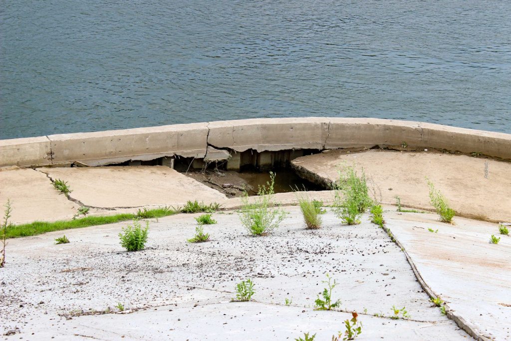 Фотографии ниже я сделал в начале июля. И как бы показушно сейчас «специалисты не укрепляли береговую линия и в работе не участвовали коммунальные службы и строительные организации», они не изменят общий факт того, что набережная в состоянии полномасштабного разрушения. Ямку они устранили, молодцы…