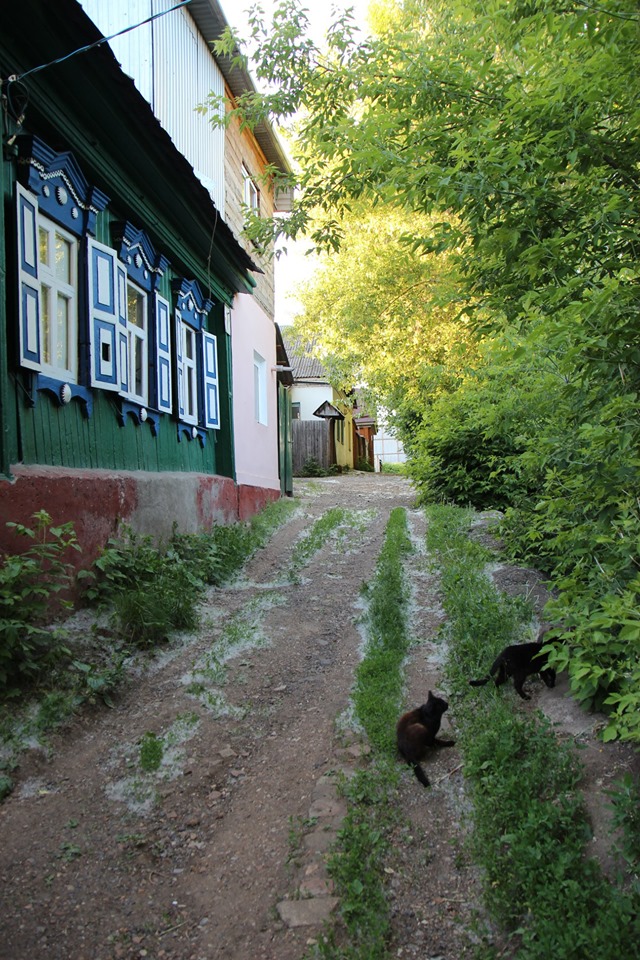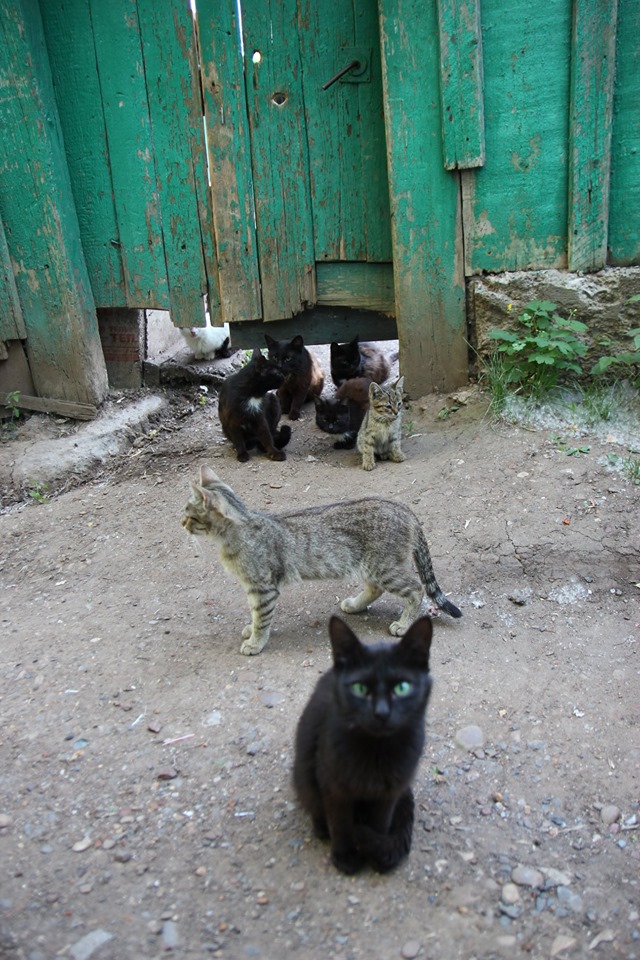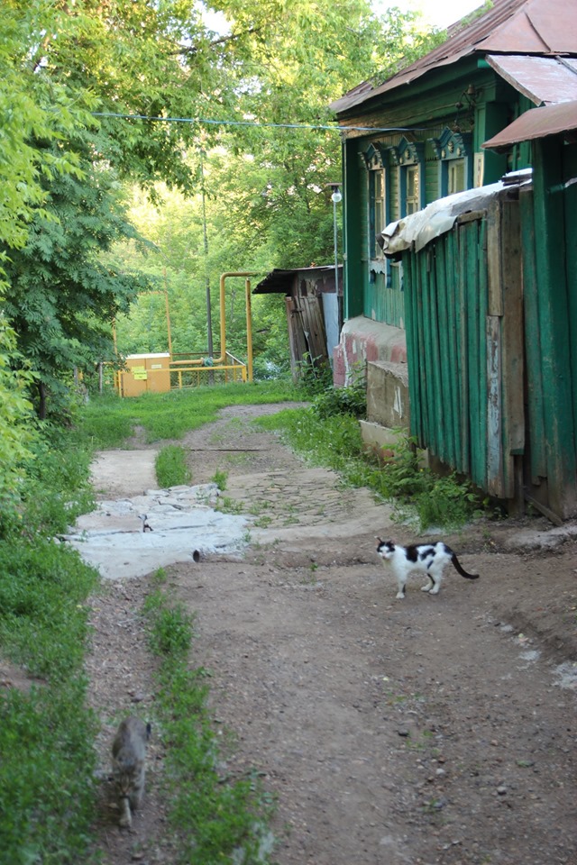 В овраге за трамвайной линией по Сун-Ят-Сена, дома стоят вдоль берега Сутолоки. В одном месте, на прогалине у берега, тавкает, и неумолчно тавкаяет на кого-то местный пес. Потом смотрю что-то выхватил из воды — серый комок, упустил и опять лает на него. Неужели здесь в Сутолоке кто-то водится? Нутрии?