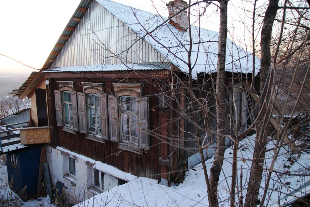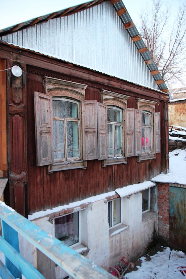 Жильцами, и жилищными управлениями он доведен уже до состояния хибары, а на самом деле дом то большой, и даже двухэтажный, и подвал, вероятно, есть. С единственной сейчас в Уфе галереей, ведущей на второй этаж. А вид какой от него замечательный. Чудное было бы место для отдыха и прогулок.
