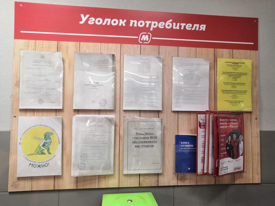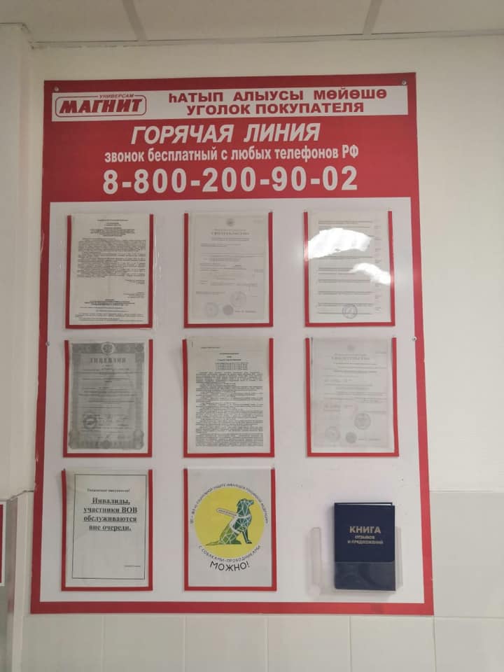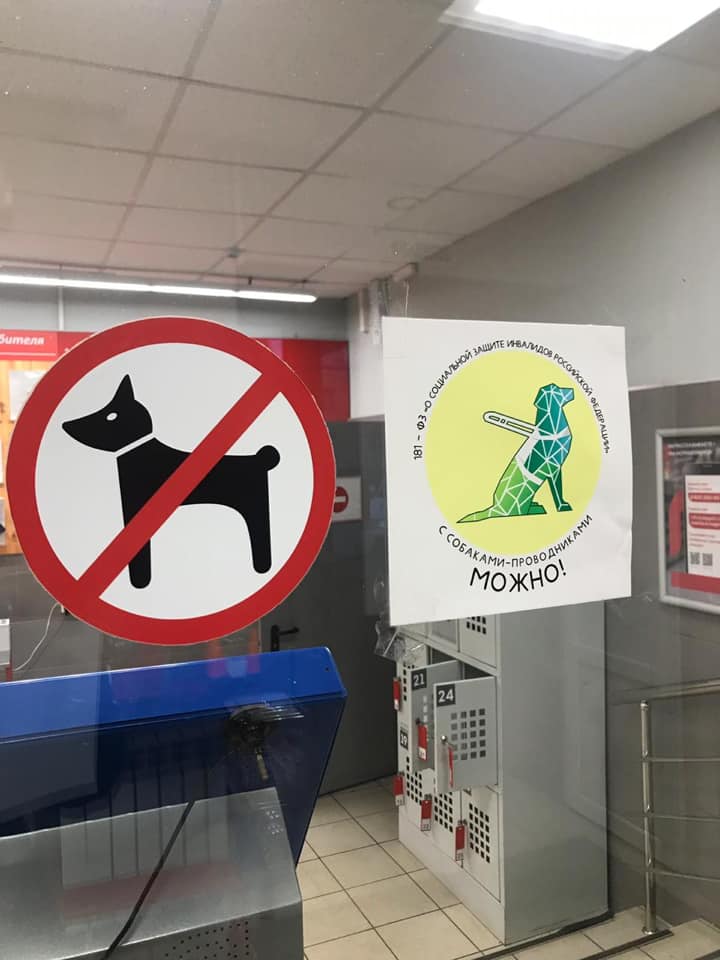 И сегодня с утра пришли хорошие новости. Розничная сеть «Магнит» поддержала наш социально-информационный проект, направленный на популяризацию 181 Федерального закона и разместила стикеры «Вход с собакой проводником разрешён».