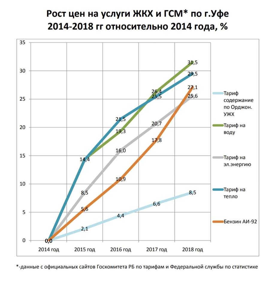 С 2012 по 2015 год мы вели статистику того, насколько выросли тарифы за коммуналку по Уфе. Прирост по некоторым позициям был на 220%