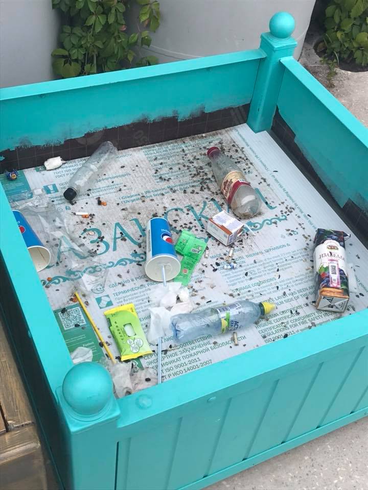 4. Мусорок нет, так сделаем их из горшков для цветов — правильно. Я насчитала четыре горшка-мусорки. Обычные так и не поставили. Ждемс.