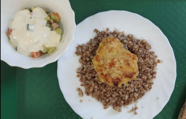 А как всё просто было в наше время! Никто нас и наших родителей не спрашивал, что дают — то и ели. И какой-то странный напиток с привкусом какао, весь в молочных пенках, — давились, но пили. И яйца вкрутую ели, точно помню, потому что одноклассник Женя как-то попробовал разбить яйцо об мою голову. Кашу пшеную или рисовую поливали топленым маслом в центре, а я так его не любила, что не размешивая, ела только вокруг. Кусок колбасы жареной иногда был, тоже весь лоснящийся от масла. Хлеб был не вполне свежий, заветренный. Творожная запеканка была еще вроде.