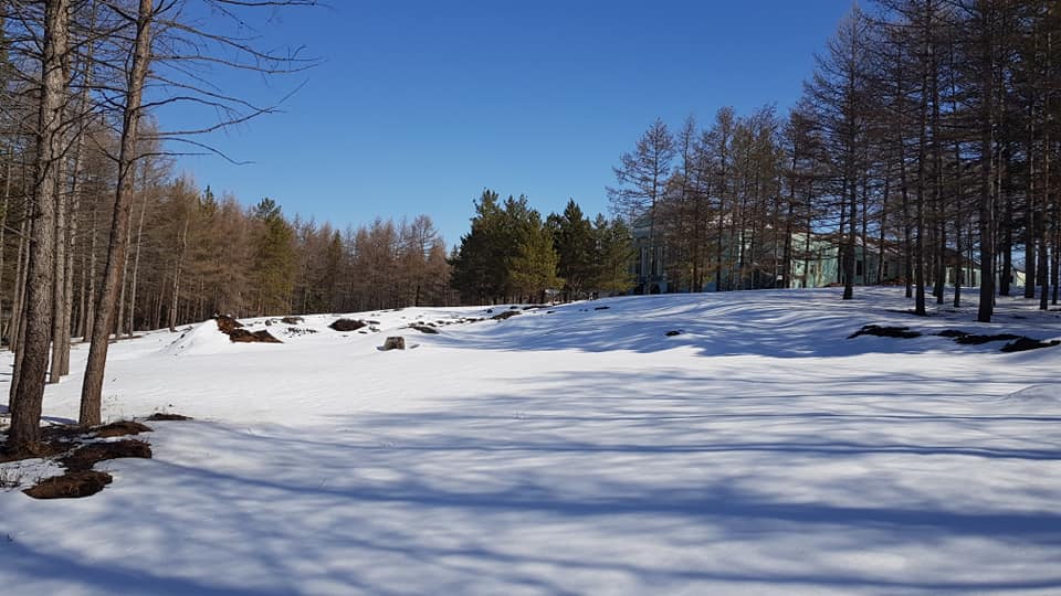 На территории дома отдыха посадили лиственницы( раньше они не росли)