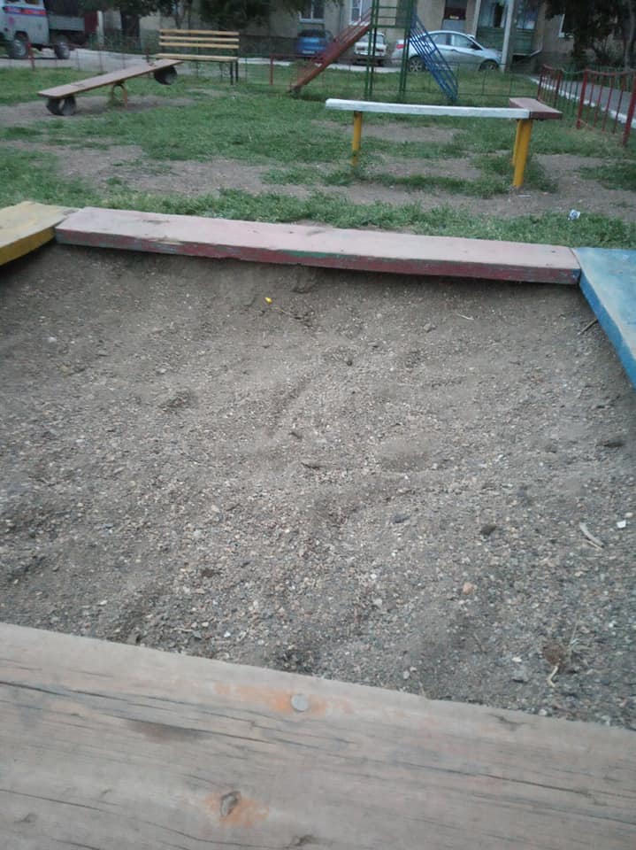 Вчера на пробежке сфоткала штук 5 песочниц. Везде похожий субстрат из грязи и камней. Даже на детской площадке возле здания администрации города. В двух шагах. Люди говорят, что это давняя история, и что песочницы, в основном, используют дворовые кошки. В качестве туалета.