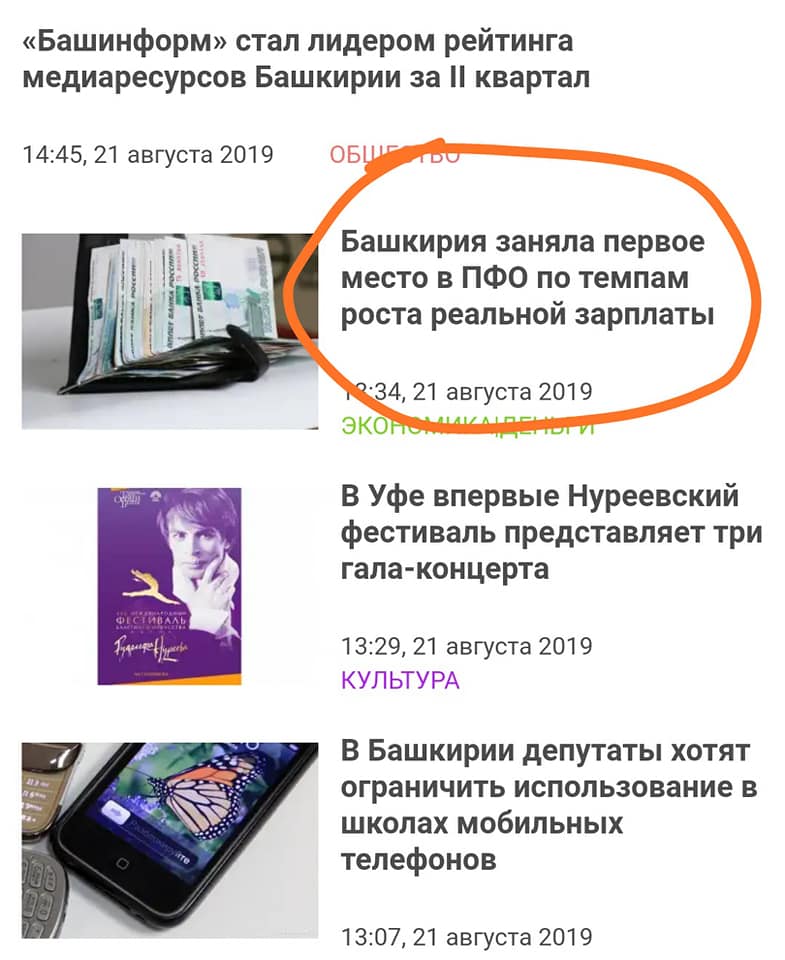 Главное, что глупость-то Радий Хабиров сморозил не ахти какую: ему после публикации «Правды ПФО» нужно было всего лишь изменить одно слово в своей записи — как это, к примеру, сделал «Башинформ» (доказательства прилагаются). Башкортостан — лидер в ПФО не по зарплате, как написал врио, а всего лишь по ее динамике. Хабирова, кстати, поправила не только «Правда ПФО», но и некоторые комментаторы в Фейсбуке (и да, я видел, кто их лайкнул).
