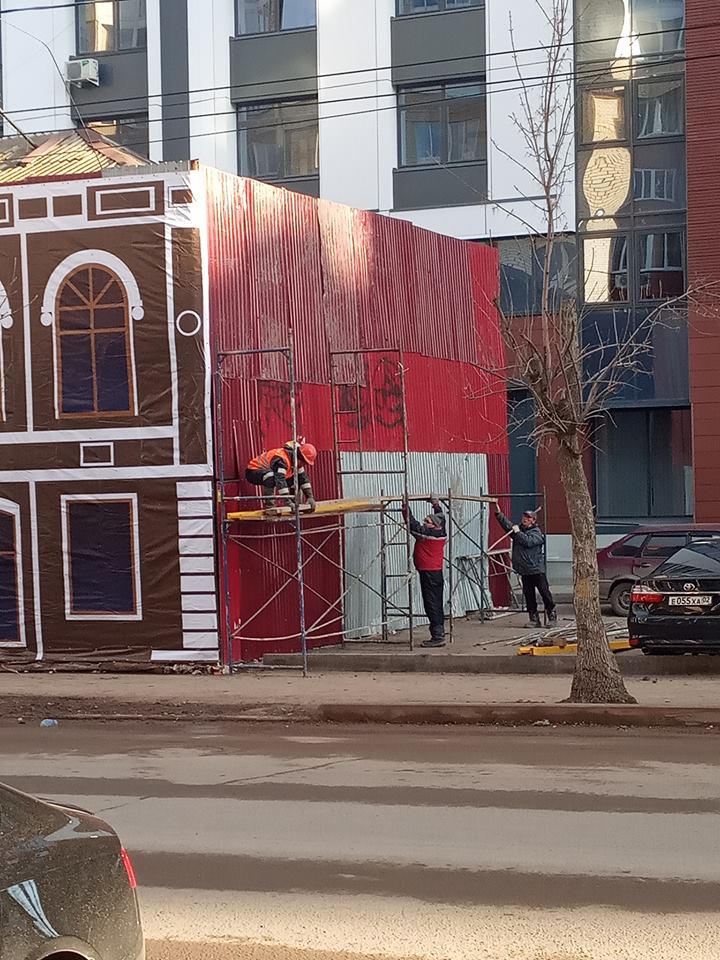 Ура! Со вчерашнего утра начали занавешивать Дом Тихониных. Очень надеюсь, это это начало реставрационных работ в памятнике 19в.