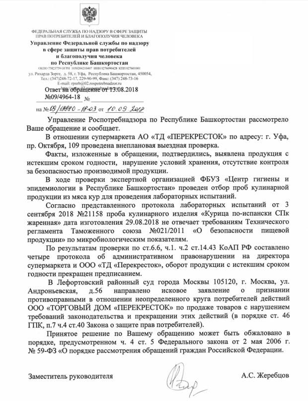— Зря вы так сделали! Вам надо было купить эту курицу и отнести с заявлением в Роспотребнадзор. С курицей все было в порядке!