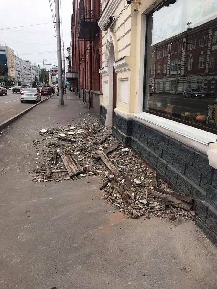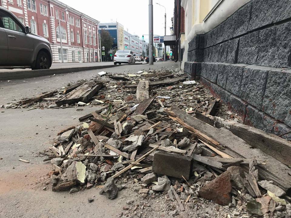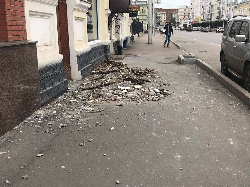 Историческое здание. Приехали работники ЖЭУ, раздолбали, всё бросили и уехали. Ул. Карла Маркса 33. Работники кафе говорят, что » …никто не убирается после этого. Звонили в диспетчерскую, никакой реакции». Господин глава администрации Ленинского райна (который не отмечается в сообщении), ау?! Дискредитация слов Ялалова о сохранении старины, чистоте, новом подходе. На деле получается, что шеф врёт горожанам? Камиль Юлаев посмотри,плиз.