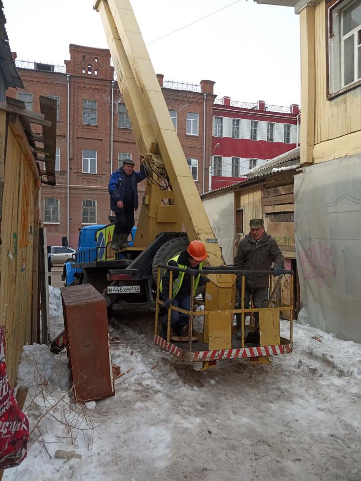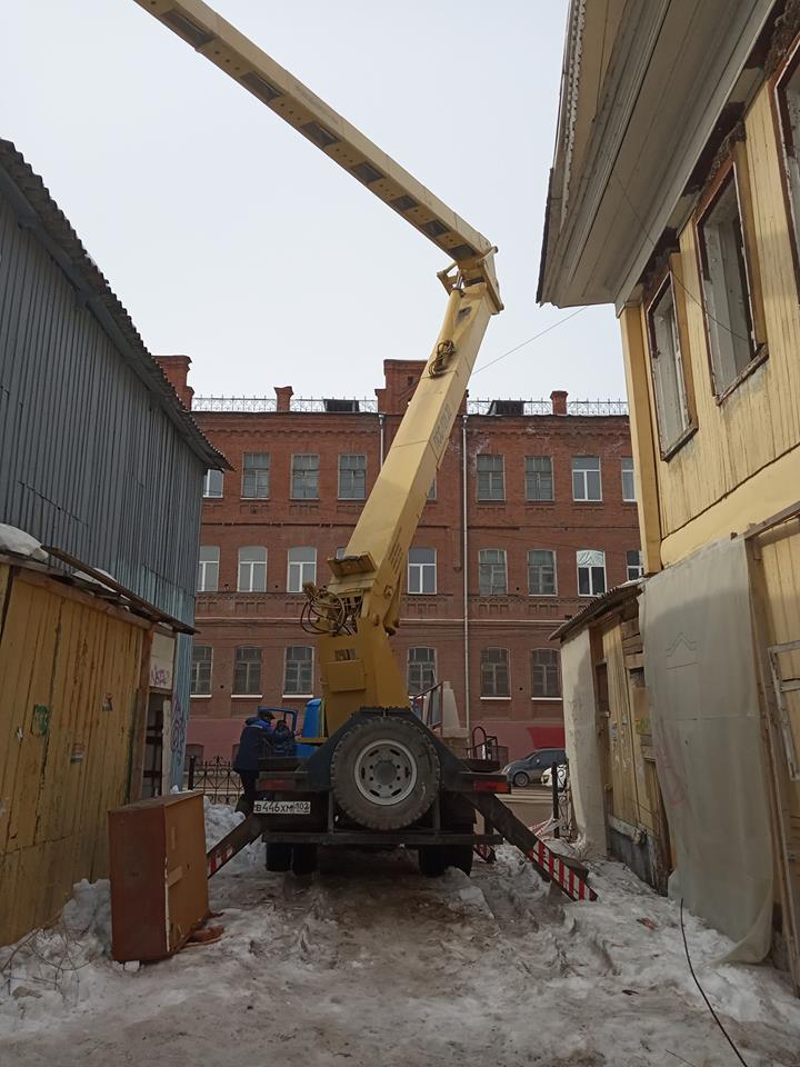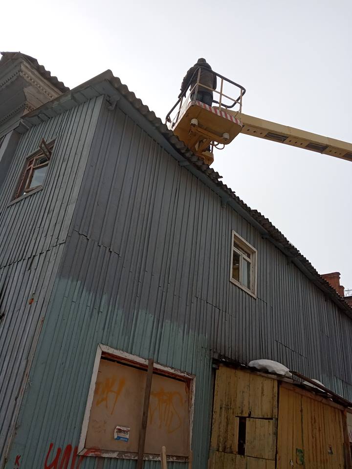 Кроме того, по окончании основной уборки приехала спец. техника с рабочими, которые очистили крышу Усадьбы Бухартовских от снега и наледи. За что отдельное спасибо Администрации Уфы.