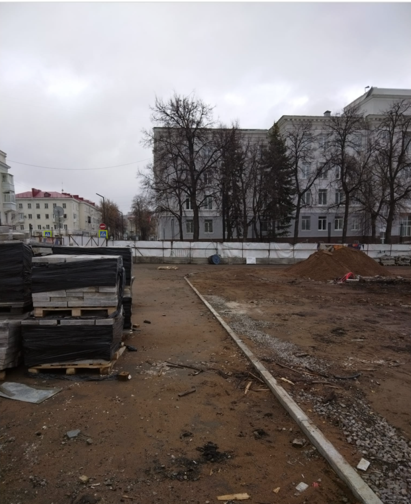 Третья (?) часть Марлезонского балета. Площадь опять раскурочена, как будто ничего не было: сосны ожидаемо высохли и срублены, плитку, фонари и скамейки, видимо, унесло дождём.Похоже, освободили место для колоннады.Как же надо ненавидеть город, чтобы столько лет бездарно долбить его в самое сердце ((Хотя, если надо освоить средствА, почему бы нет?