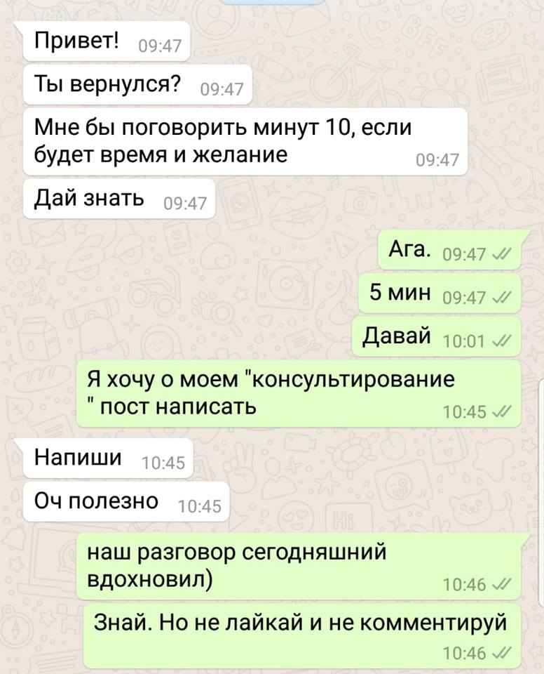 Я много лет консультирую любовниц, жен и обманутых мужей. Ну в общем, одну из сторон любовного треугольника.