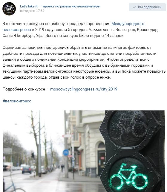 И Уфе есть что показать — один из самых крупных велопарадов в России, первые велодороги в России, проект БУВК, наработки по велоцентру и байкшерингу и т.д. Да и где же еще его проводить как не в конгрессной столице России? У Уфы осталась отличная инфраструктуры от саммитов ШОС и БРИКС.